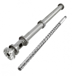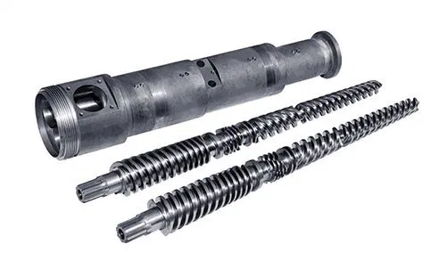 | Шнекова пара одношнекового екструдера | Шнекова пара двошнекового екструдера |